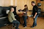Nous sommes dans un studio de chant, le piano fonctionne et notre Vic ne sait pas jouer – pauvres de nous -, nous avons une chaise sur roulette comme véhicule pour le plan-séquence, quelques idées, un scénario et moins d’une heure… Action!