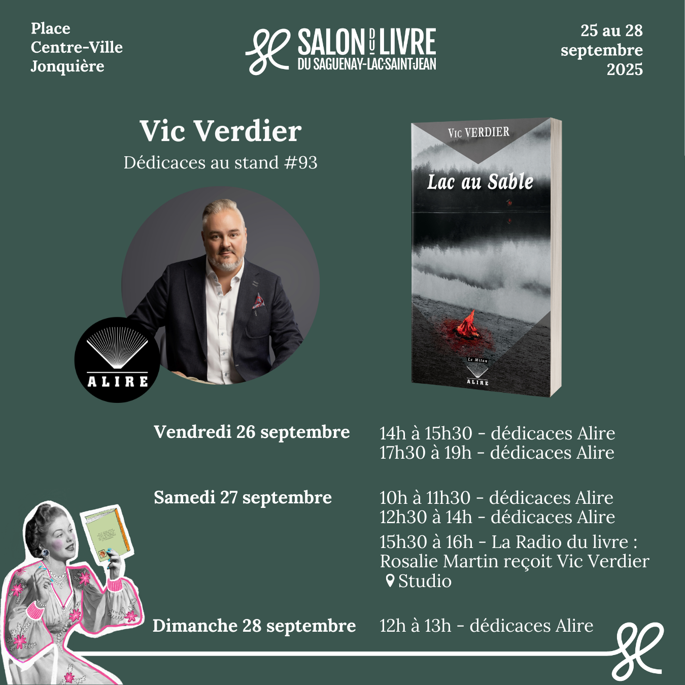 J’ai hâte de se croiser dans la nouvelle mouture du salon. En effet, la 61e édition du Salon du livre du Saguenay–Lac-Saint-Jean se déroule du 25 au 28 septembre 2025 à Place Centre-Ville Jonquière