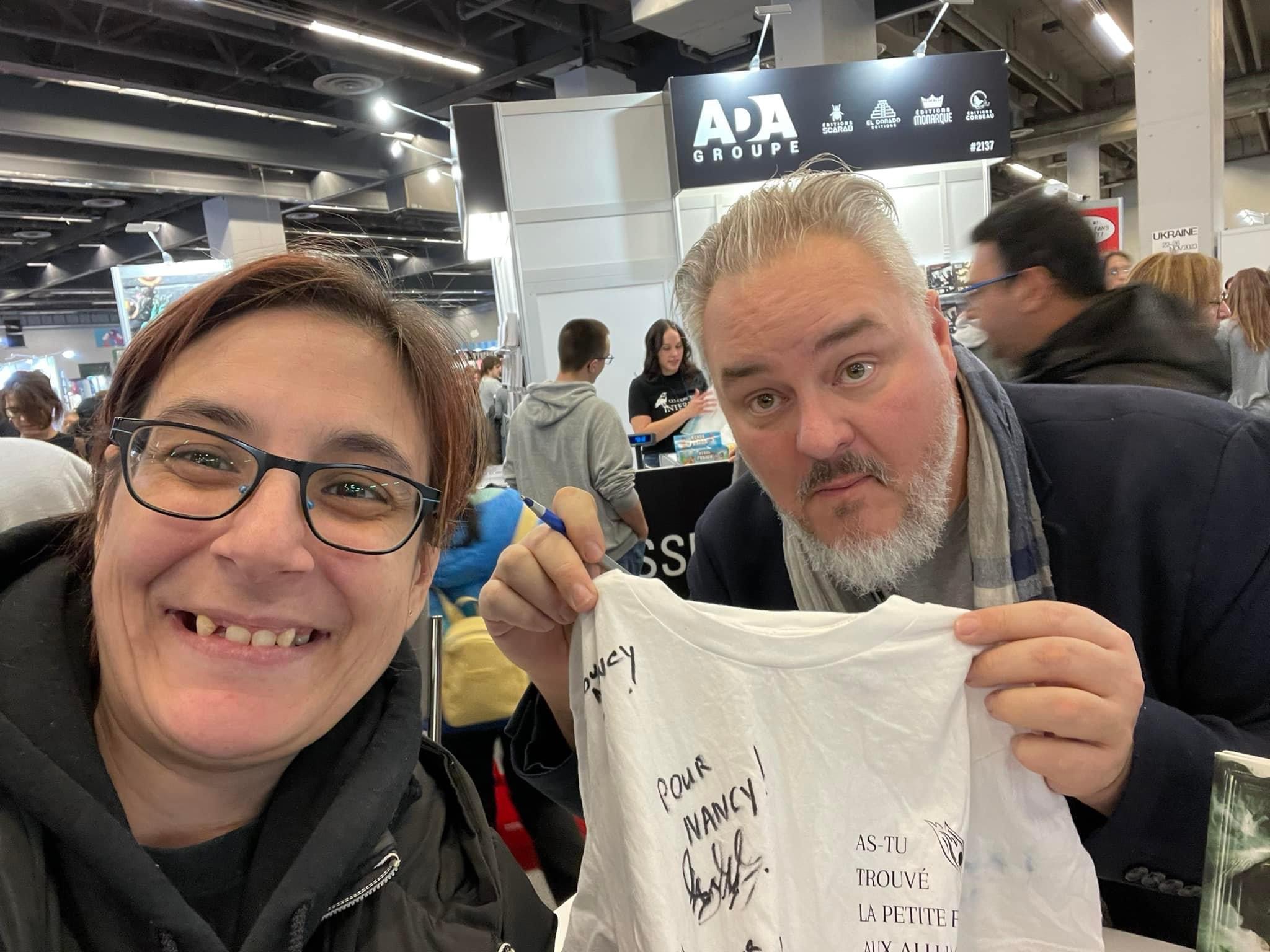 De belles rencontres pendant les séances de dédicace… et l’habitude de froncer les sourcils en pinçant les lèvres. Ben oui, c’est ça.